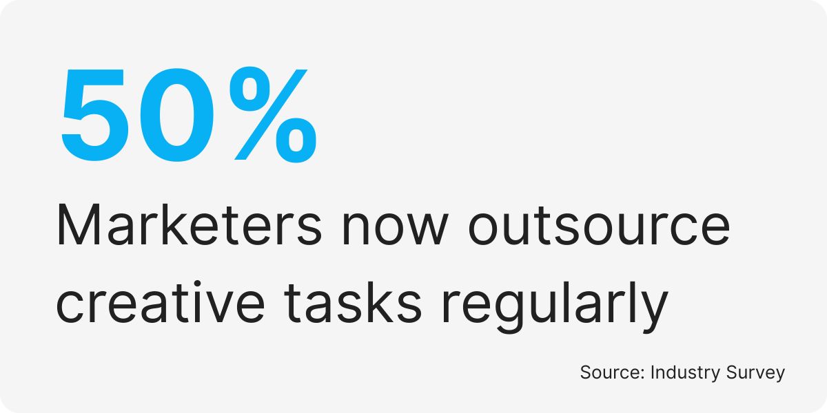 Over 50% of marketers now outsource creative tasks like graphic design, video design, copywriting, editing, SEO, and strategy to keep up with content demand. For content creators, handling everything solo, from thumbnail design to revision rounds, often leads to burnout: a survey shows that 63% of creators delegate video editing or visual design to free up time and maintain consistency.