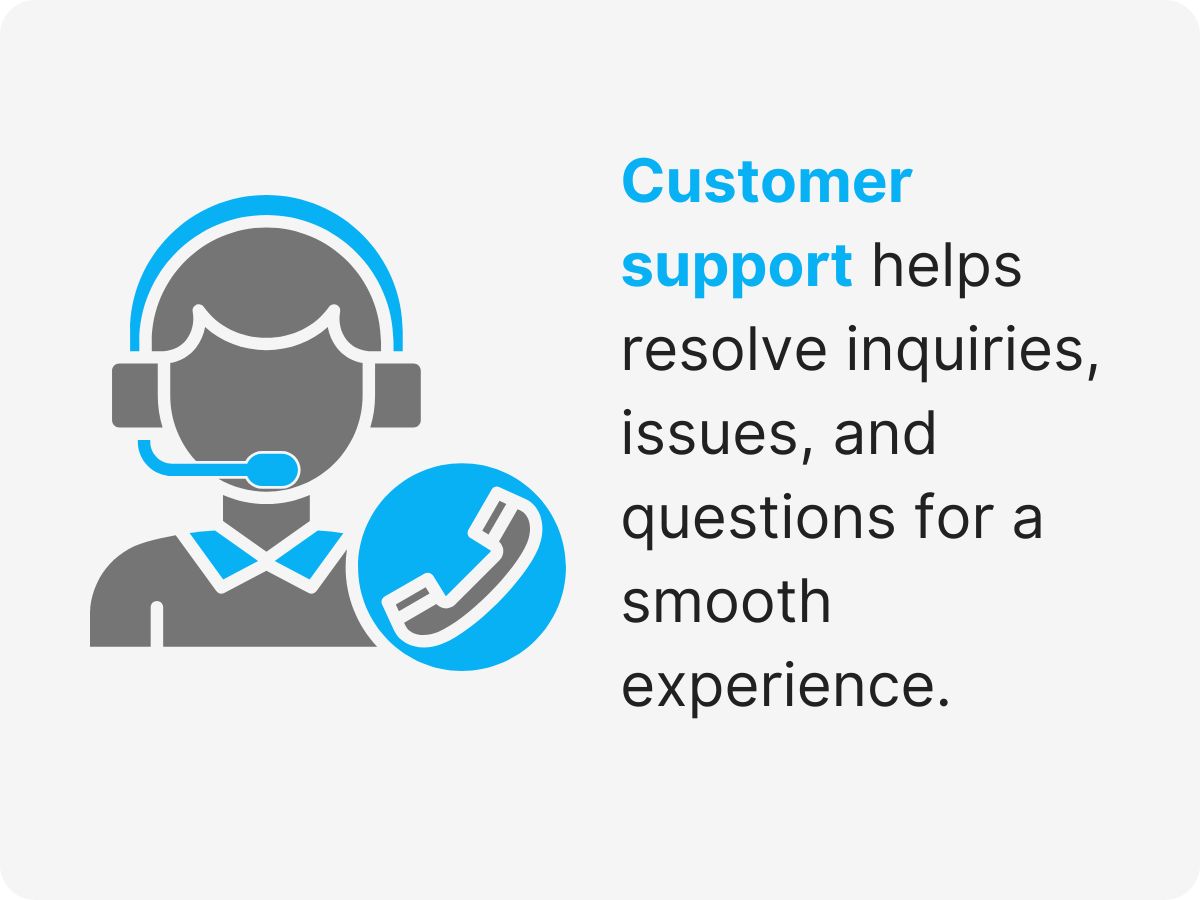 Customer support assists customers with inquiries, issues, and product-related questions to ensure a smooth user experience.